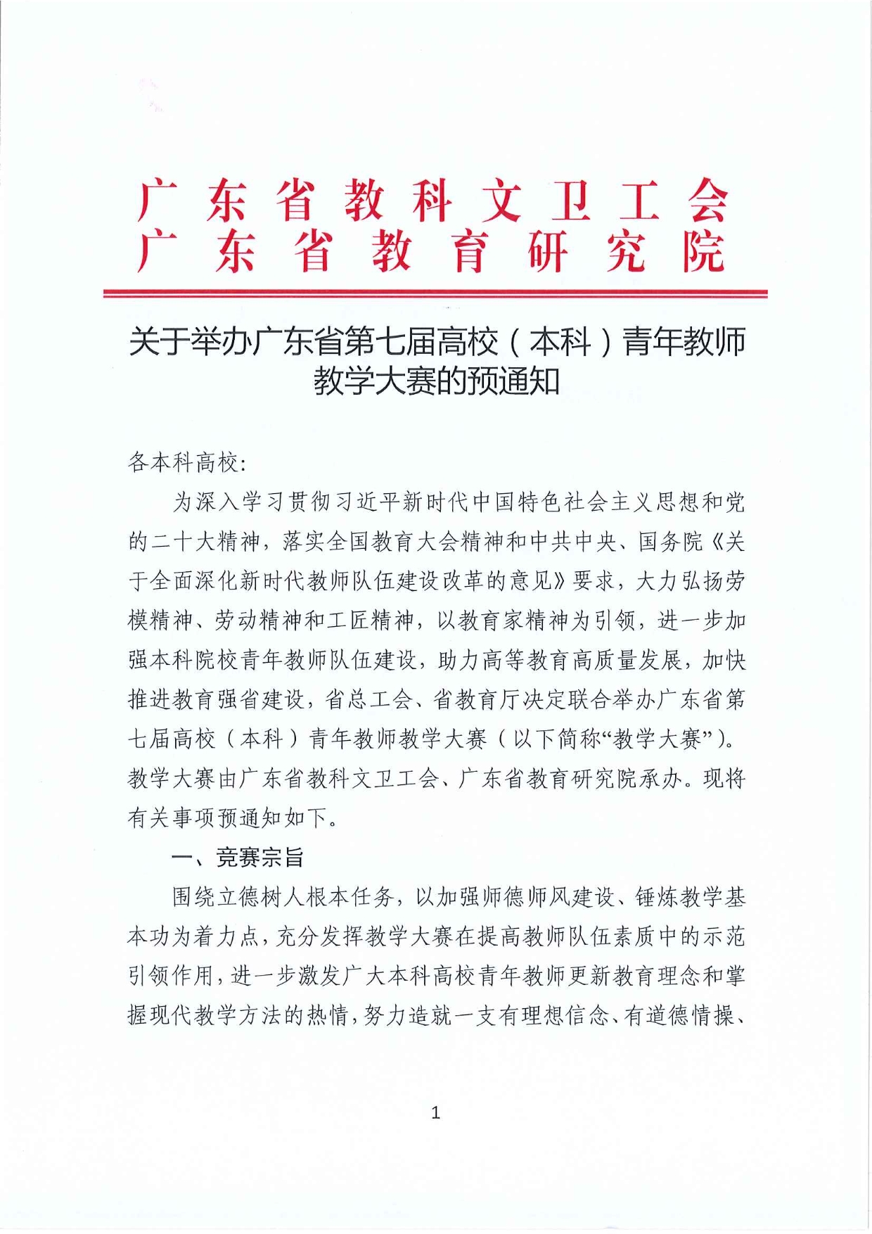關于舉辦廣東省第七屆高校(本科)青年教師教學大賽的預通知.pdf