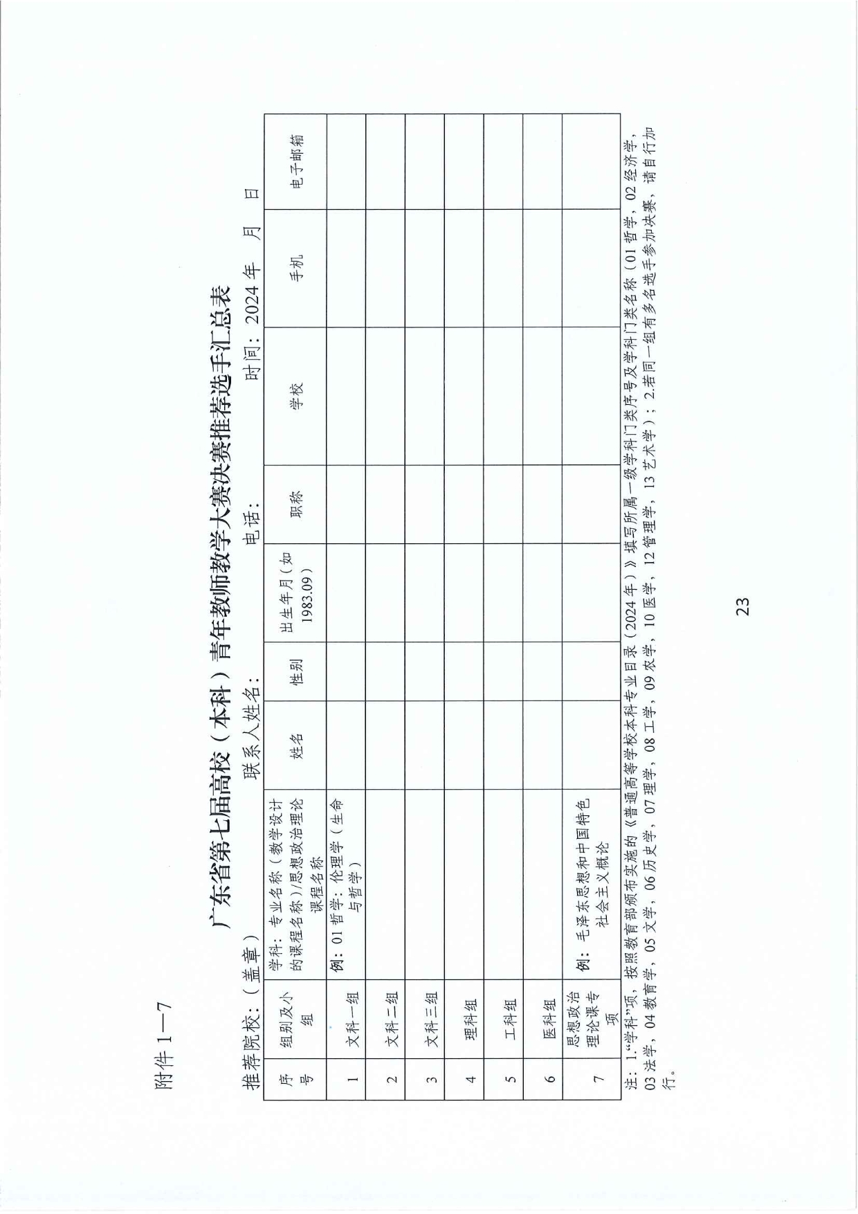 關于舉辦廣東省第七屆高校(本科)青年教師教學大賽的預通知