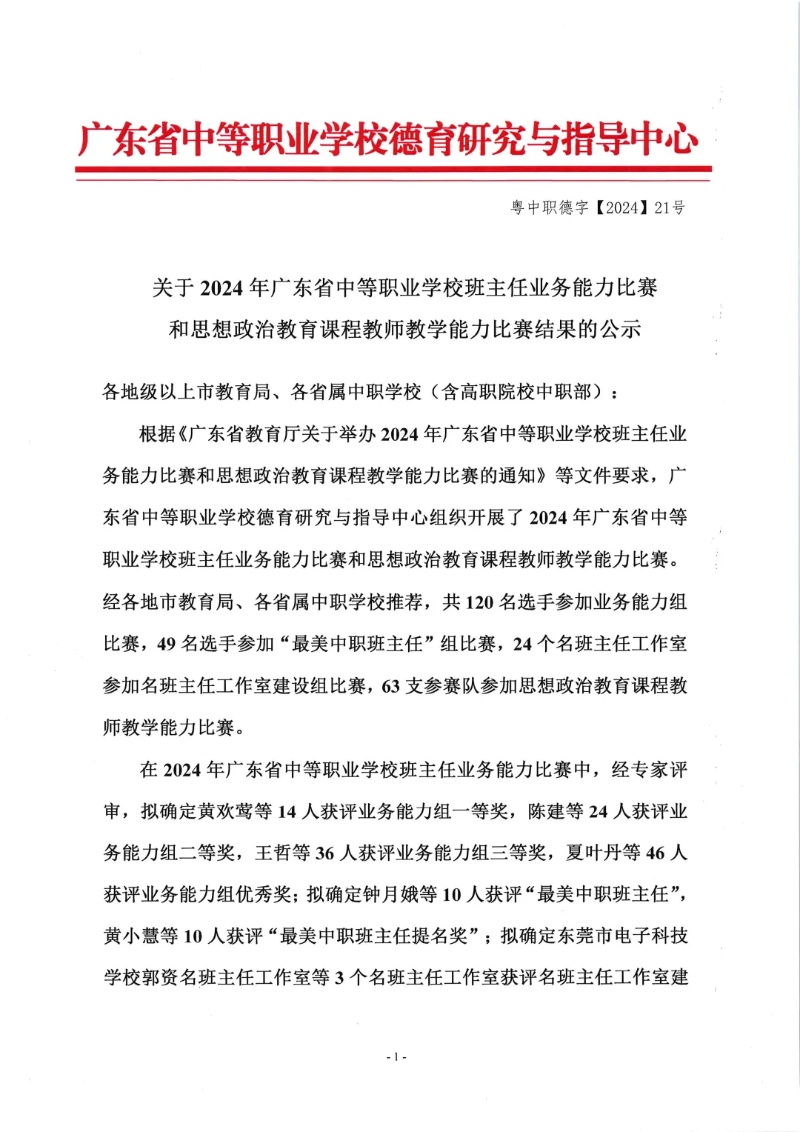 【獲獎名單】2024年廣東省中職班主任業務能力比賽和思政課教學能力比賽結果公示