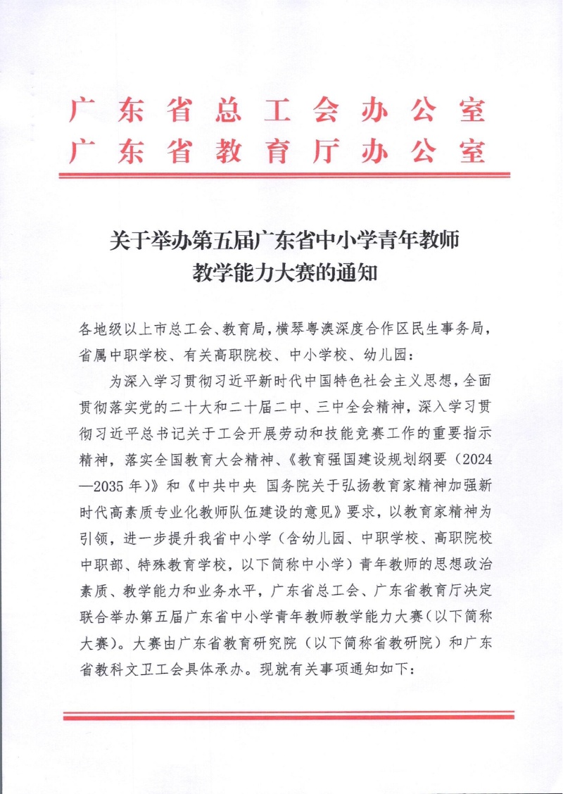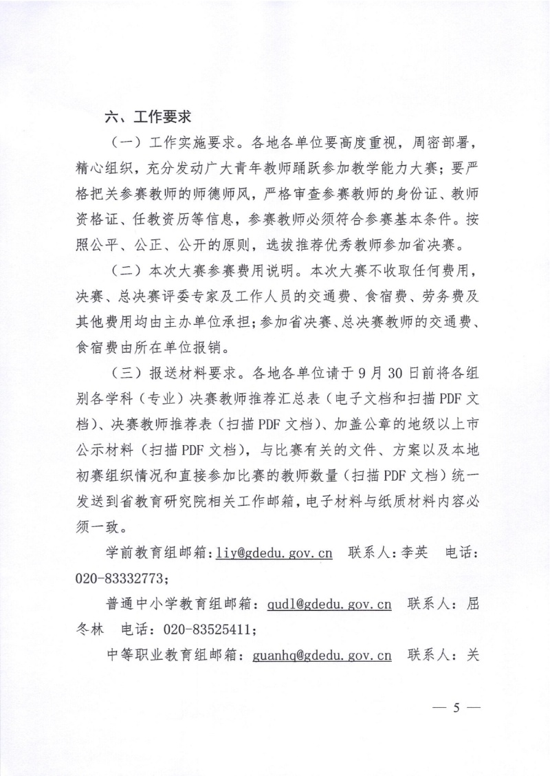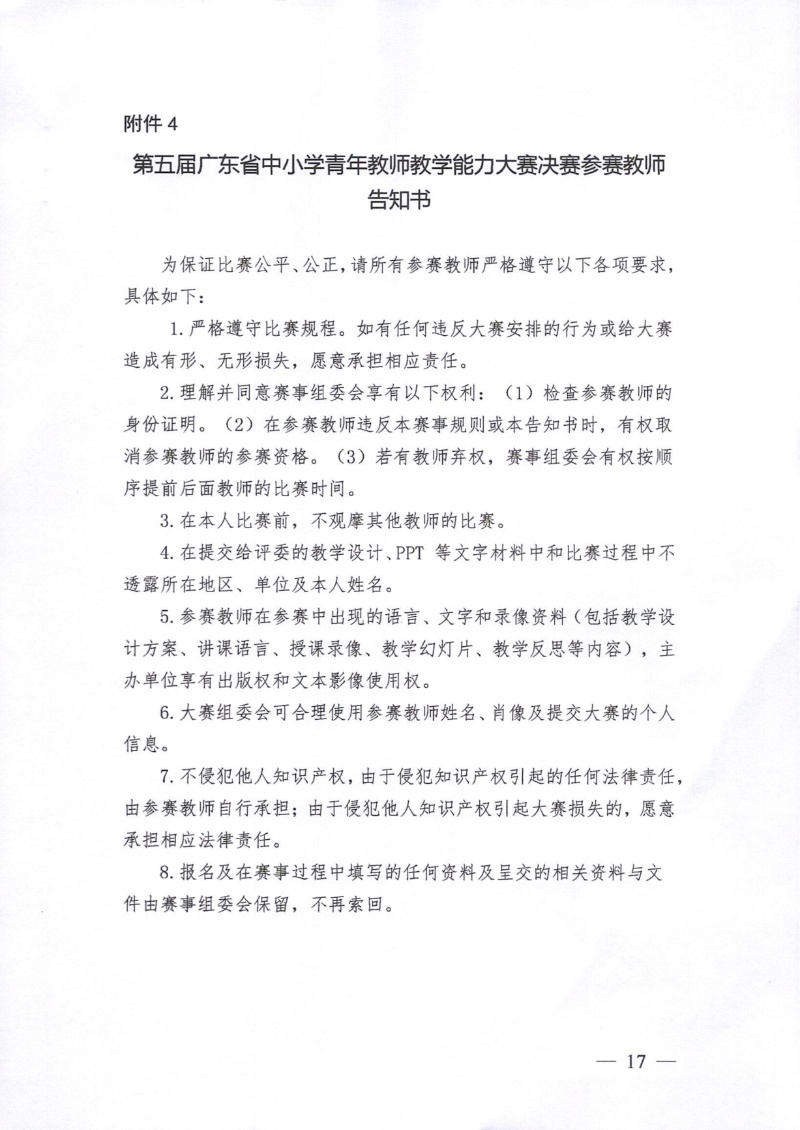 關(guān)于舉辦第五屆廣東省中小學(xué)青年教師教學(xué)能力大賽的通知