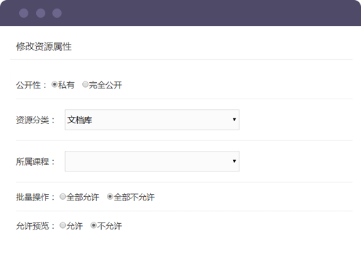 提供公開性,下載權限等多重的自主權限設置策略,讓資源完