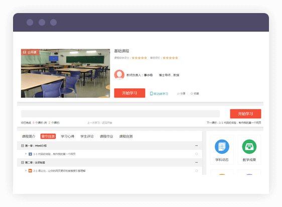支持從教學大綱,授課,推送作業和測試,學習數據分析等全過程線上授課流程
